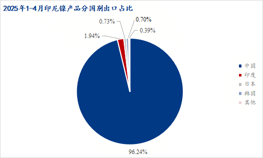 據印尼貿易部最新信息,2025年4月份印尼鎳產品出口總計1112692實物噸(下同),其中NPI912007噸,FeNi19820噸,高冰鎳26979噸,硫酸鎳14560噸,MHP133001噸,電解鎳0噸。