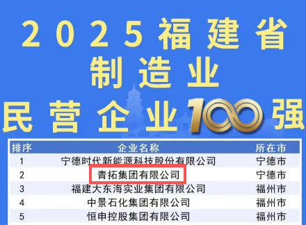 會上發(fā)布了2025福建省民營企業(yè)100強(qiáng)、制造業(yè)民營企業(yè)100強(qiáng)、服務(wù)業(yè)民營企業(yè)100強(qiáng)、創(chuàng)新型民營企業(yè)100強(qiáng)四個榜單,其中,青拓集團(tuán)憑借其卓越的經(jīng)營業(yè)績和強(qiáng)大的綜合實力,再次脫穎而出,榮獲福建省民營企業(yè)100強(qiáng)第二名和制造業(yè)民營企業(yè)100強(qiáng)第二名的優(yōu)異成績。
