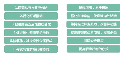 2.與抗生素聯合,幫助肺部炎癥吸收,短病程,有利于抗感染,減少抗菌藥用藥時間;