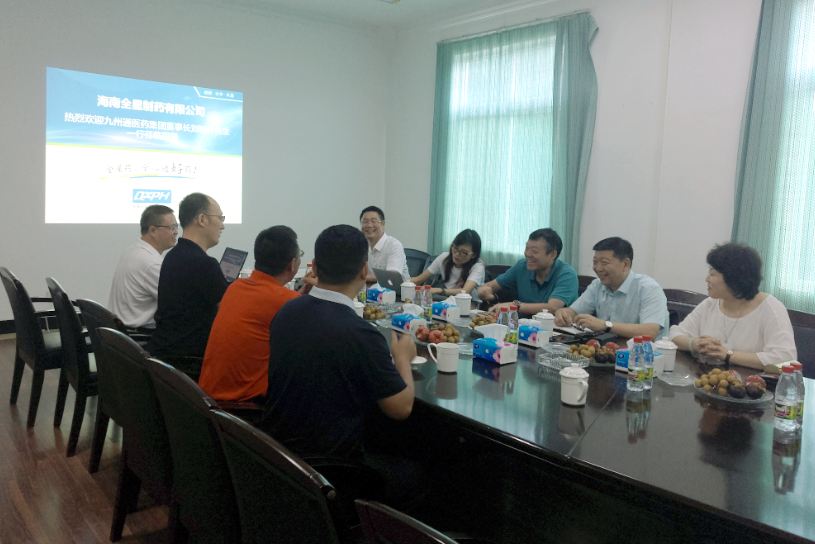 2018年07月25日,九州通醫藥集團董事長劉樹林先生一行蒞臨海南全星制藥有限公司調研并指導工作。全星制藥董事長劉全勝先生攜公司領導班子一同參加了座談會,并對劉樹林先生一行的到來表示熱烈的歡迎。雙方就企業的發展愿景及醫藥行業的發展前景展開了討論。