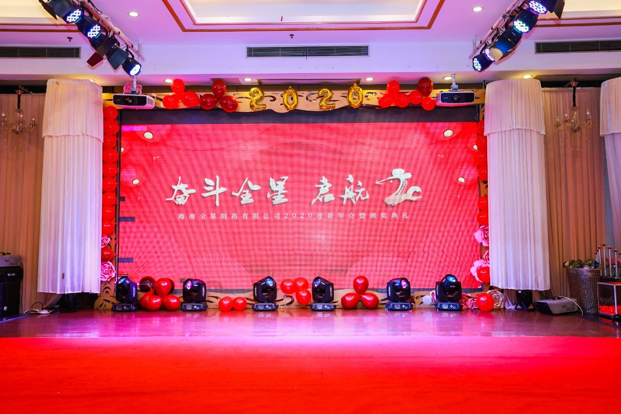 2019我們披荊斬棘,2019我們齊心協力,2019我們邁著堅定的步伐,伴著蓬勃的朝氣,譜寫燦爛篇章。歷添新歲月,春滿舊山河。海南全星制藥有限公司——“奮斗全星·啟航20”迎新年會暨頒獎盛典于2020年1月17日14:00在南海大道瓊菜王舉行,全星制藥全體員工及董事長家人們歡聚一堂,共迎新春。