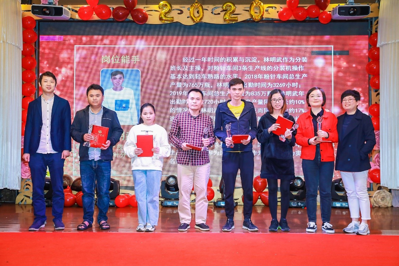 優秀的員工值得被表彰和嘉獎,致辭結束,便是隆重的頒獎典禮。這次的表彰大會不僅設立了優秀員工獎,更設立了成長之星獎、勤勞奉獻獎、崗位能手獎、金點子獎、伯樂獎及總經理提名獎。公司感恩每一位有著突出貢獻的員工,感謝他們的付出與努力,他們每一個人都是同事們的榜樣。
